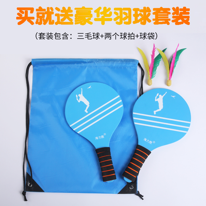 Plate badminton racket set indoor high-grade solid wood shuttlecock racket table tennis badminton three-hair ball belt racket