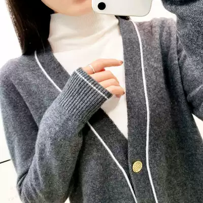 2020 new spring and autumn lazy V-neck knitted cardigan women's long sleeve sweater outside base shirt short coat large size