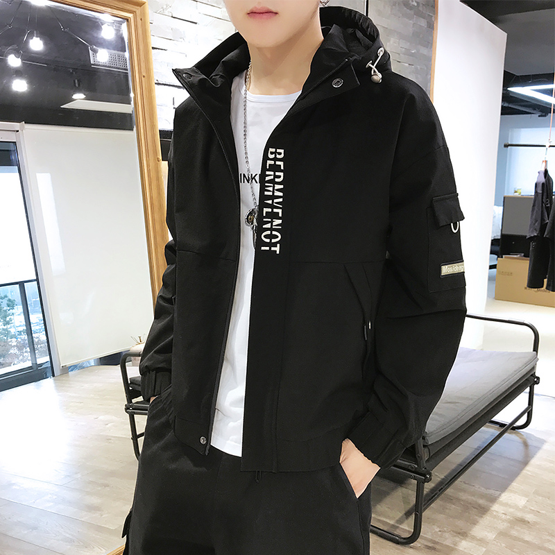 Men's autumn and winter coat 2021 new tooling jacket men hooded trend casual plus velvet jacket men's Tide brand cs