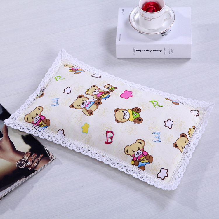 Pure Cotton Printed Coarse Cloth Baby Buckwheat Pillow Child Pillowcase Lace Pillow Pillowcase With Pillow Core Cover Removable