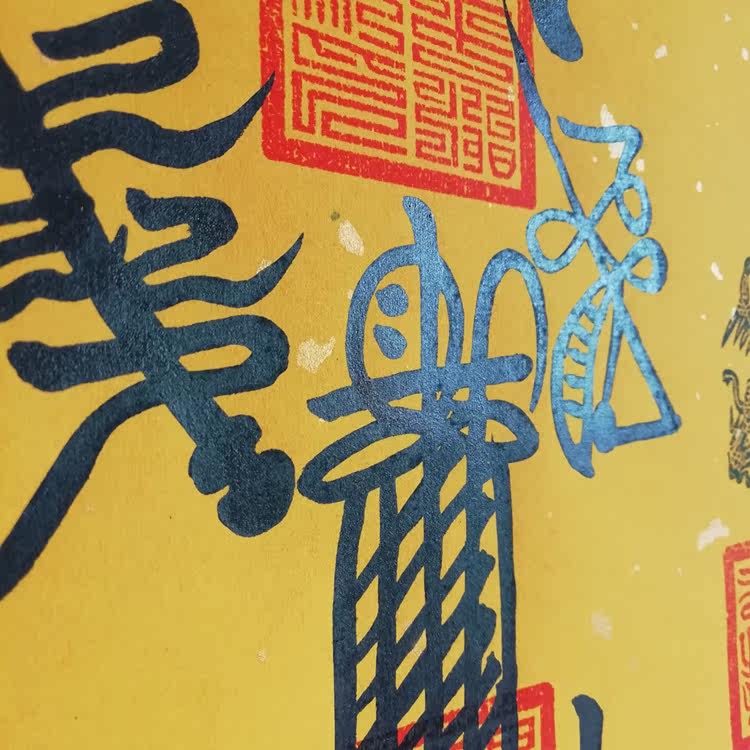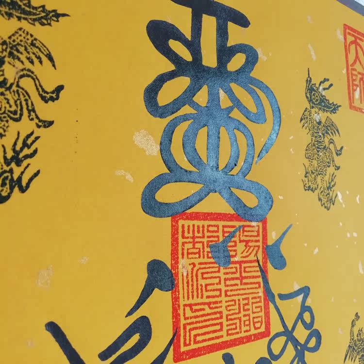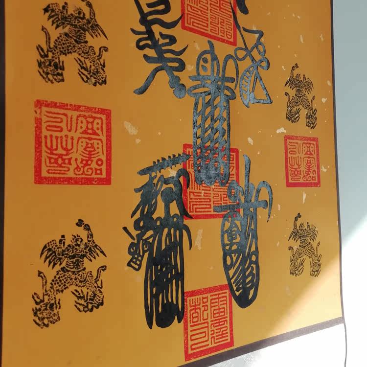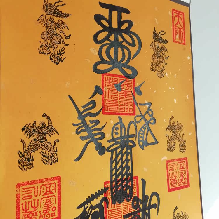 Taoist hand-painted five thunder charm scroll Tiangang Fa scroll cinnabar pen ink hand-drawn Tianshi spell scroll hanging shaft hardcover mounted