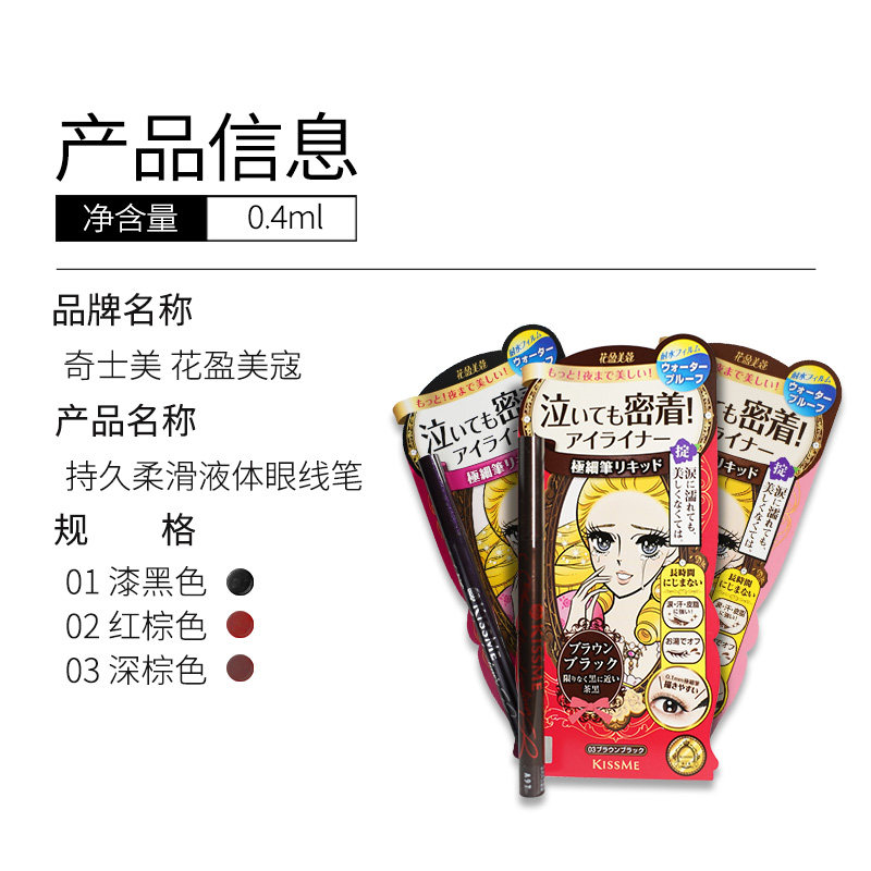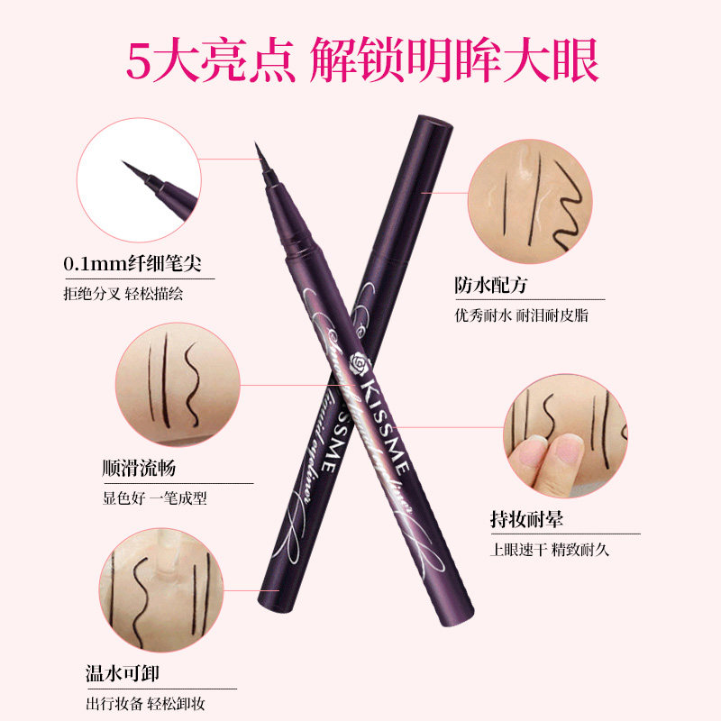 (Official) Kissme waterproof eyeliner pen novice slender not easy to smudge black brown glue paste import