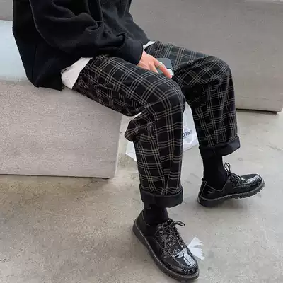 2020 spring new plus fat size Hong Kong style wild velvet plaid casual pants female fat mm loose bf straight pants
