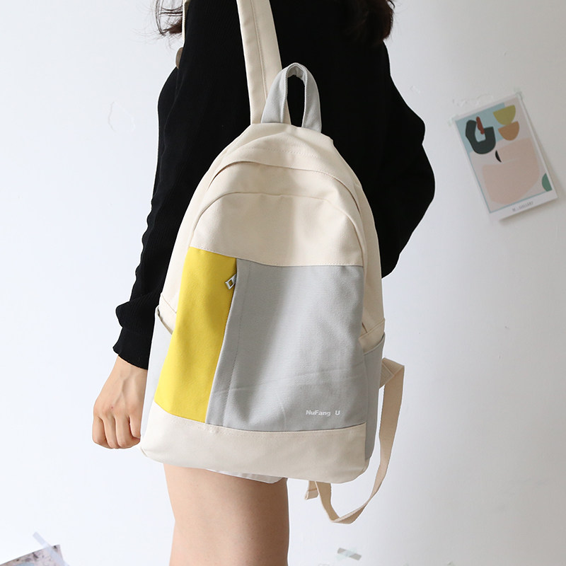 Hong Kong all-match solid color canvas backpack women's schoolbag women's Korean version of the high school student backpack women's backpack