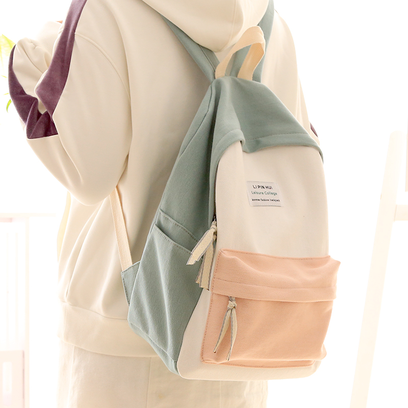 Hong Kong contrast color small fresh backpack women's backpack women's simple Korean version high school students canvas school bag