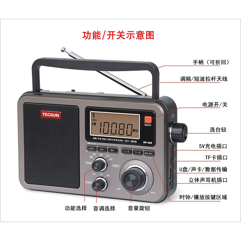Tecsun Desheng RP-309 Bluetooth Plug-in Radio Full Band Seniors New Portable Speakers 307