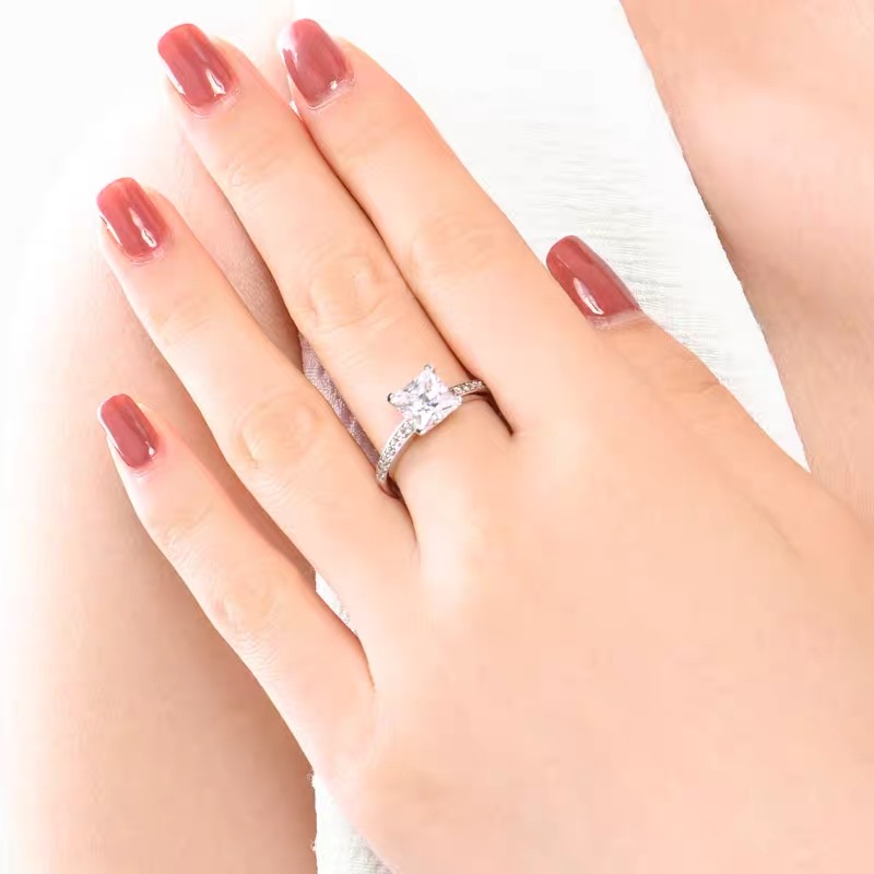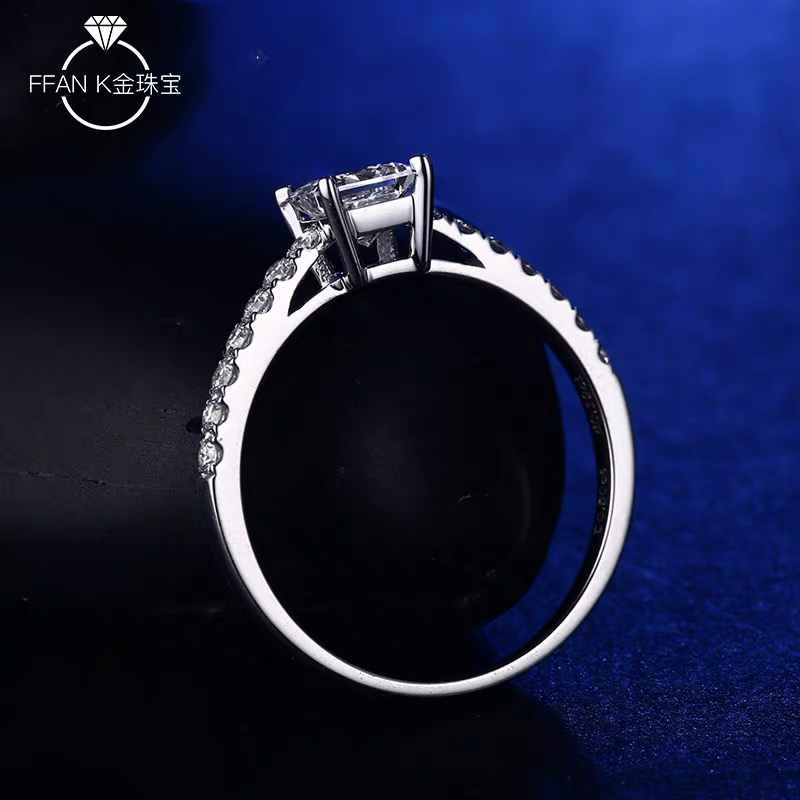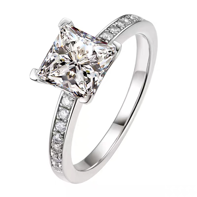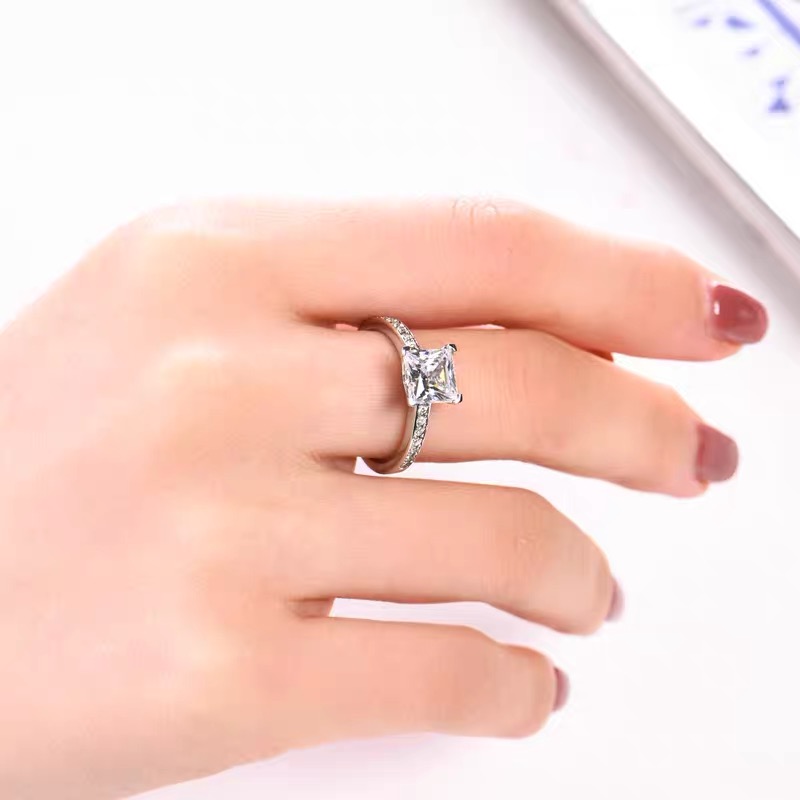 Platinum Moissanite Ring Princess Square Row Diamond Imitation Diamond Ring 1 Carat Diamond Band Set Women's Ring Classic Wedding Ring