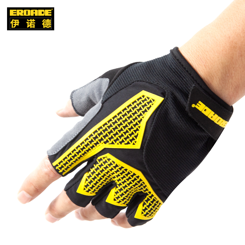 Chocolate color orange color yellow full finger glove deep card its cloth color black full finger glove red color scale reference table wine red yellow half finger glove black half finger glove