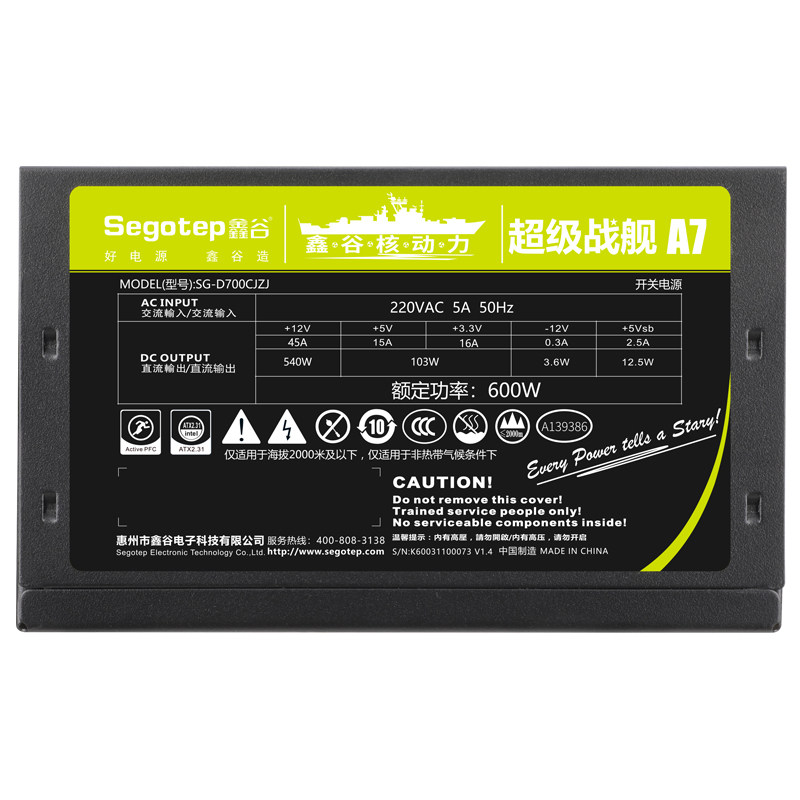 Xingu Battleship A7 rated 600W power supply peak 700W assembly computer game e-sports active power supply