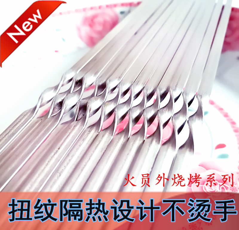 Barbecue stick tools Stainless steel thickened flat stick baking needle Sugar gourd round bamboo utensils set Shish kebab pliers