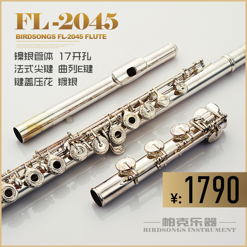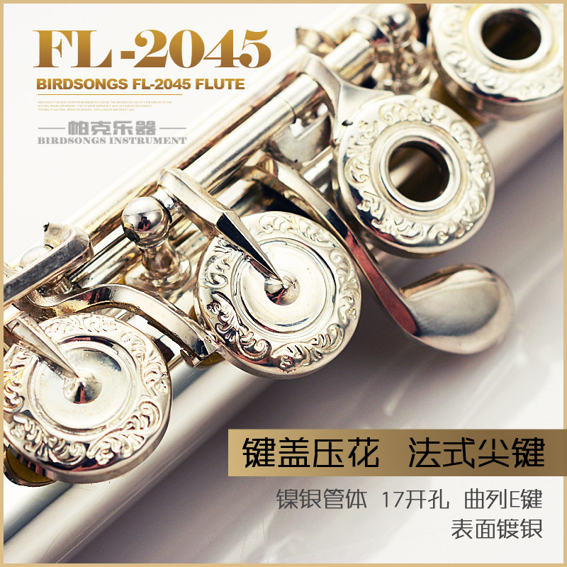 Birdsongs Parker Flute Instrument Children's Beginner Professional 17 holes open hole E key Silver plated FL-2045 flute