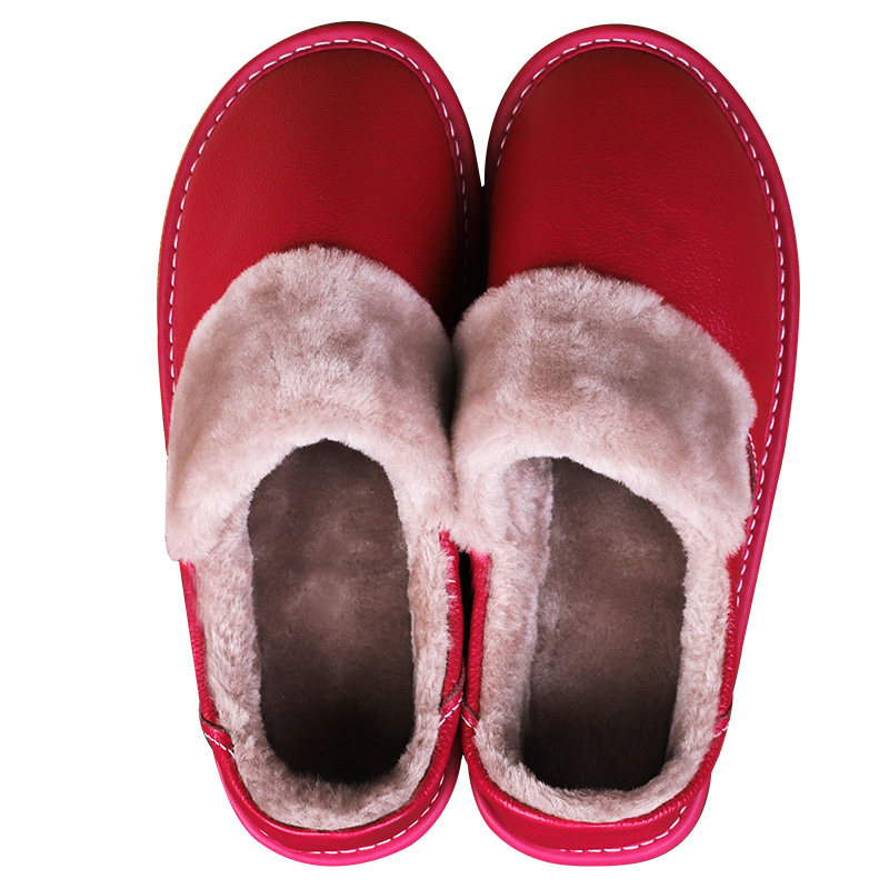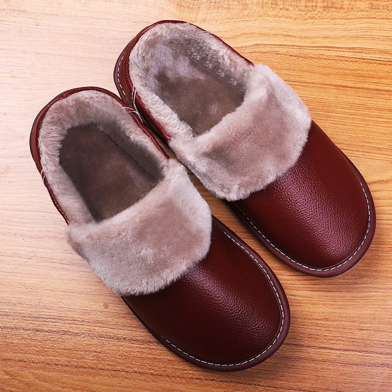 Heining Bull Leather Winter Genuine Leather male and female bag heel cotton slipper home thick bottom lovers warm floor thickened wool slippers