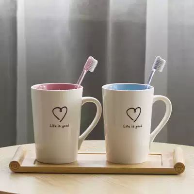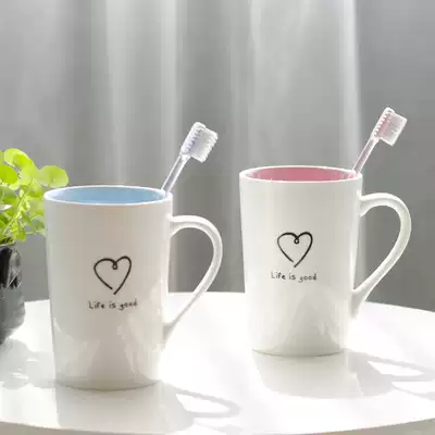 Men and women couples mouthwash Cup creative Cute ceramic brush Cup fresh toothbrush cup pair household tooth bowl wash cup