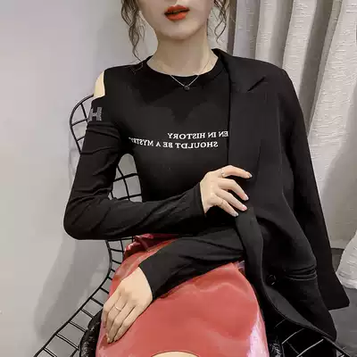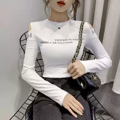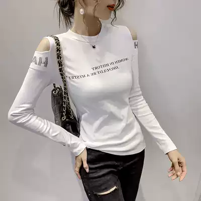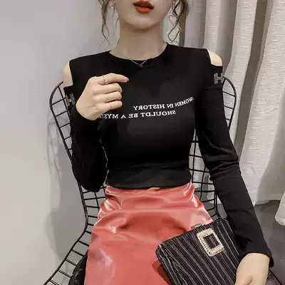 Autumn new Korean version of bright diamond letter printing careful machine fashion strapless tight bottoming top long sleeve T-shirt women