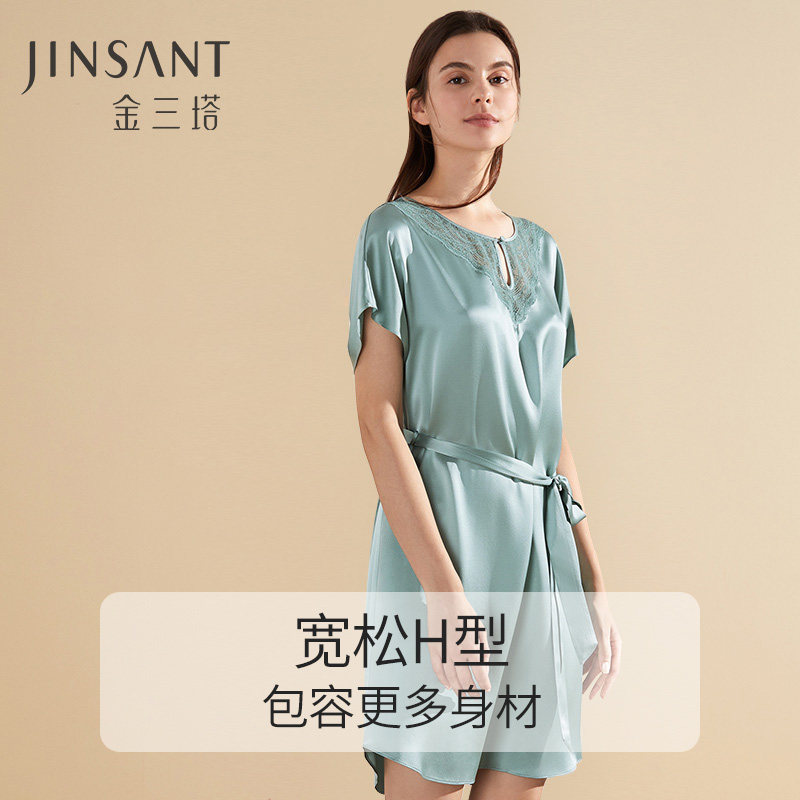 Gold Santa Serine Silk Round Neck Short Sleeve Nightdress Women 100% Mulberry Silk Pure Color Pajamas Women