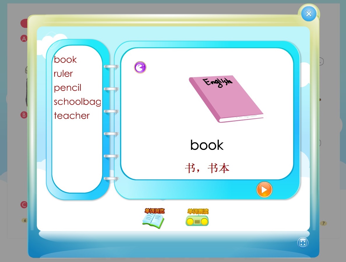 1 on computer used dot reading learning software (information 1) 1 upper class text and single word MP3 audio (information 2) 1 on game practice software for computer use (information 3) 1 read the text of the text
