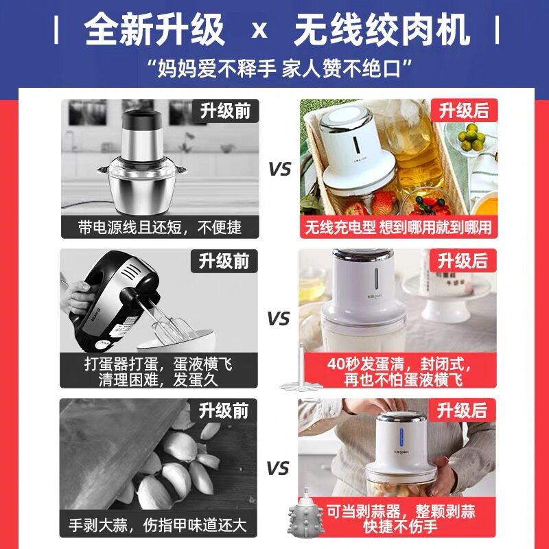 Dongling wireless meat grinder mixer egg beater household electric small multifunctional meat mincing complementary food cooking machine