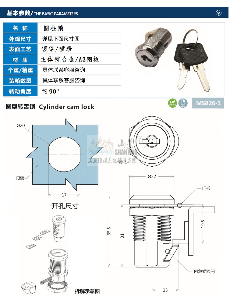 MS826-1 Distribution Cabinet Drawer Lock Small Door Lock Host Shell Enclosure Lock Telecom Box Industrial Switch Box Distribution Box Lock