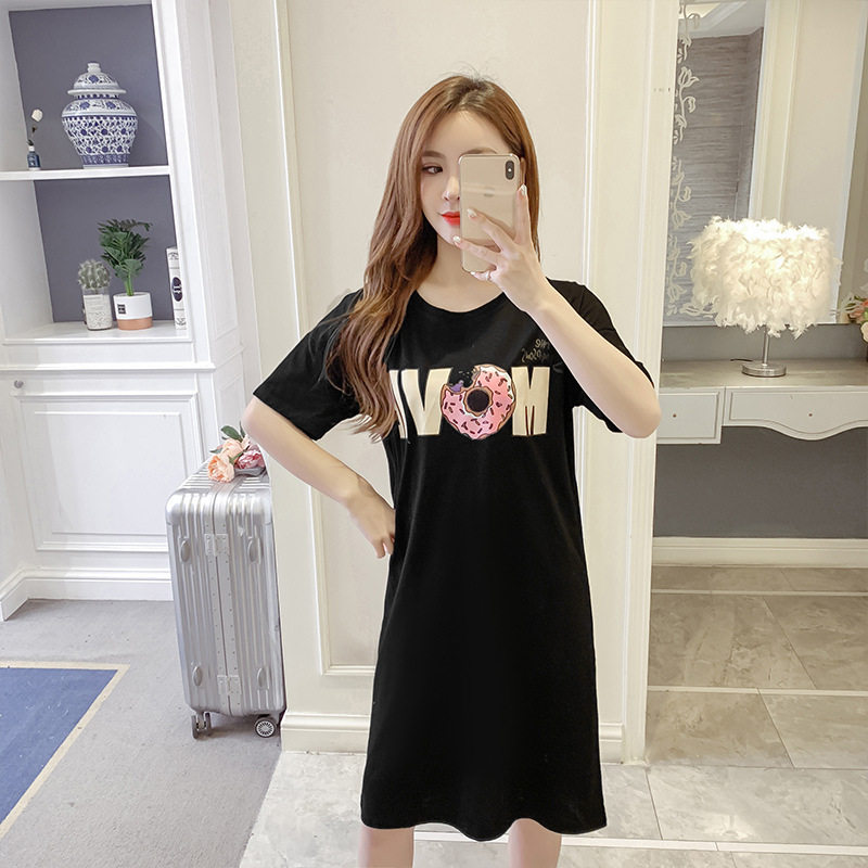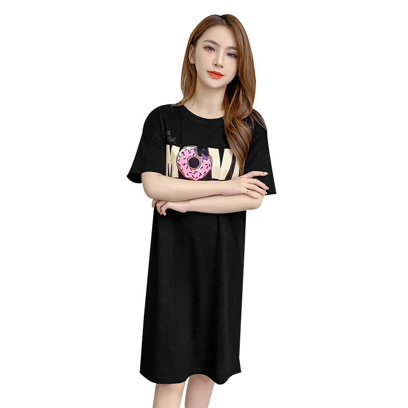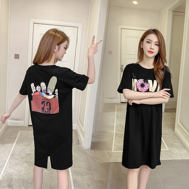 Gestational Woman Dress 2022 Summer Ocean Dress Women's Clothing Loose Medium Long Version Short Sleeve T-shirt Dress Black Conspicoy Large Size Dress Code Foreign Dress