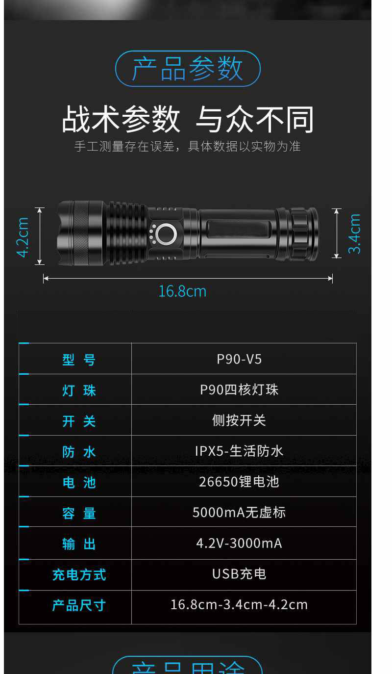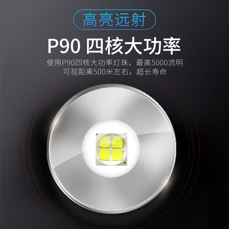 P90 Four - core flashlight LED can charge ultra - bright light outdoor searchlight for emergency patrol flashlight