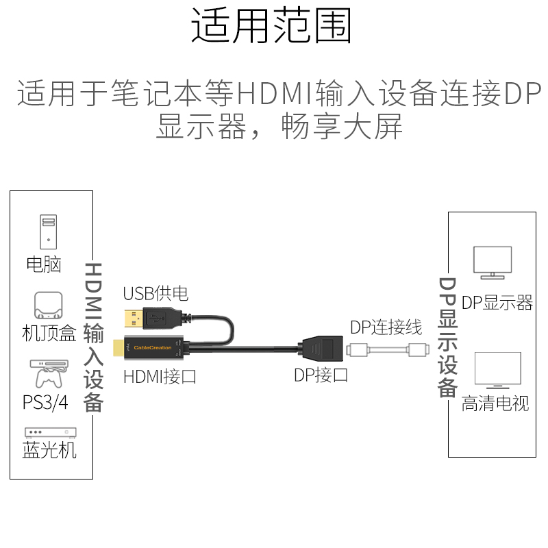 HDMI transfer DP line 144hz60hz with power supply audio-video adapter TV laptop G-SyncXboxone ps4 display converter desktop electric