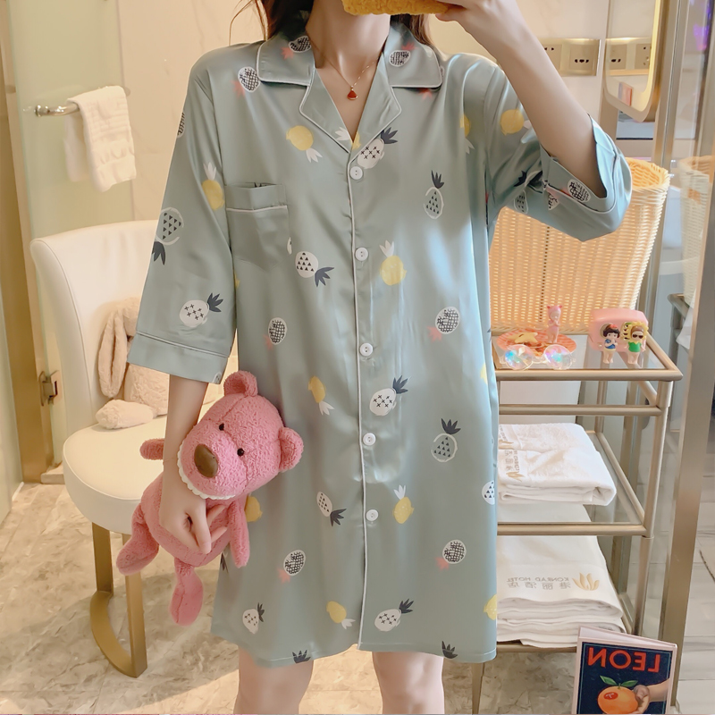 Sleeping Skirt Woman Summer Ice Silk Short Sleeves Plus Obesity Mm Pyjamas Sexy Loose Real Silk Thin and Fragrant Breeze Home Clothing