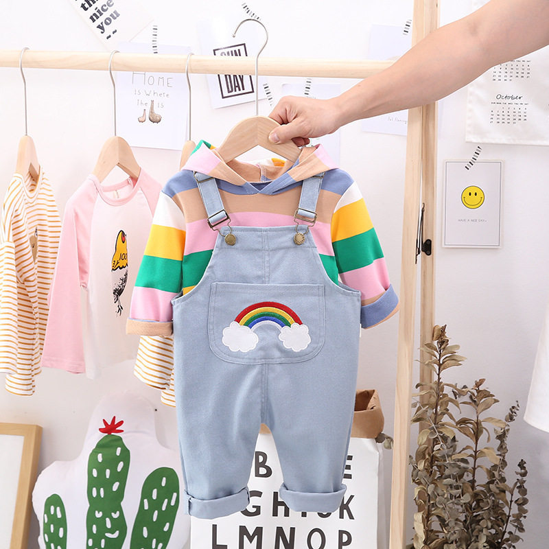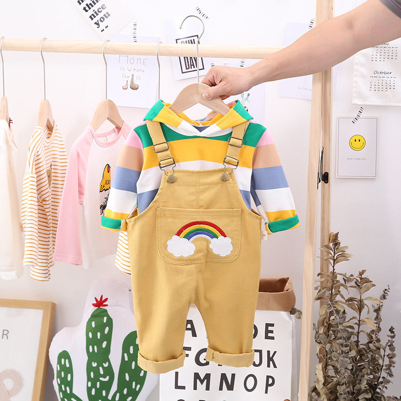 Baby Long sleeves Lianhood Baby Bag Pants Infant Spring Autumn Suit for men and women casual T-shirts Long pants Rainbow Two sets