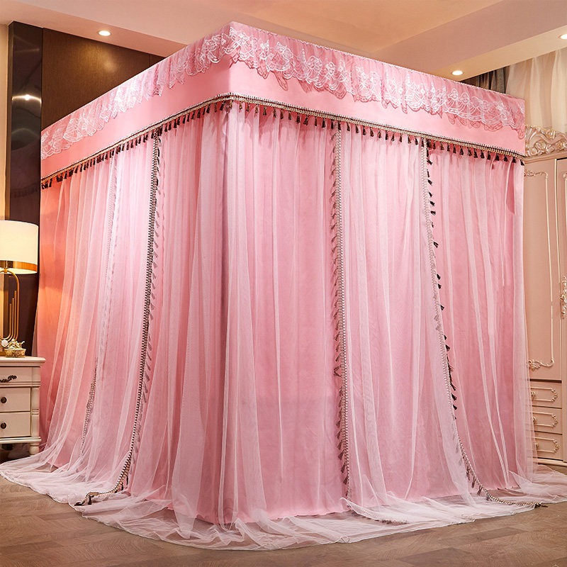 Home Encrypted Thickened Bed Curtain Mosquito Screen SHADING BEDROOM INTEGRATED WITH BRACKET PALACE GROUND FLOOR BED MANTLE DUST RESISTANT TOP CLOTH
