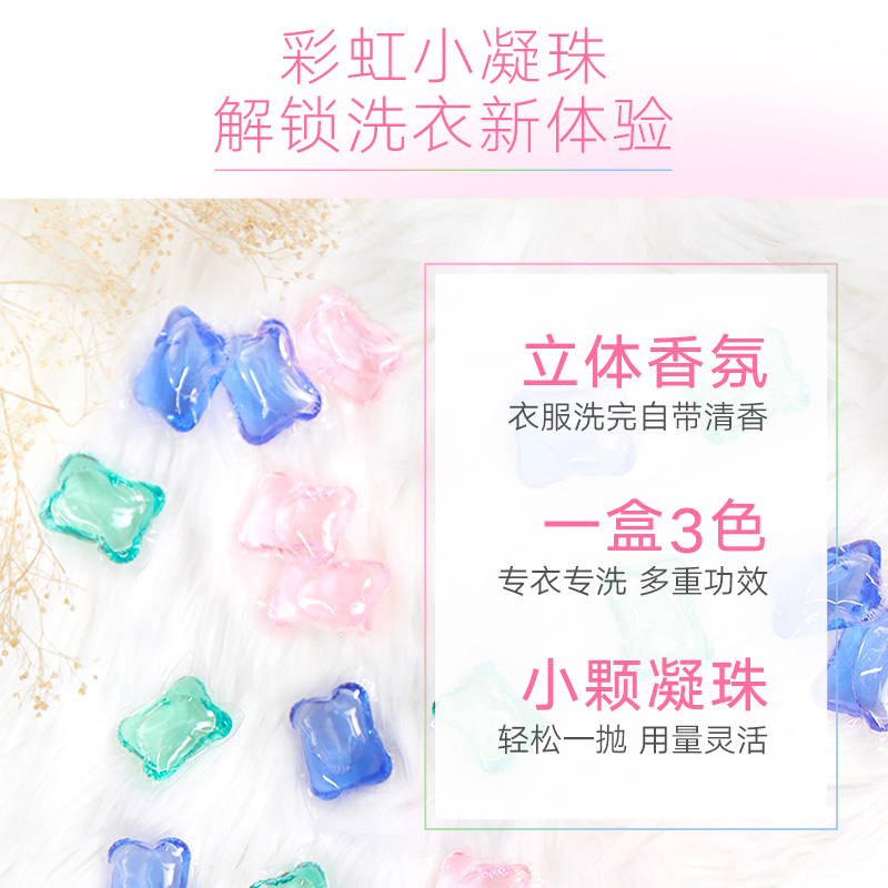 OMO rainbow three-color small beads sterilization and mite removal perfume-type protective clothing laundry beads 100 packs