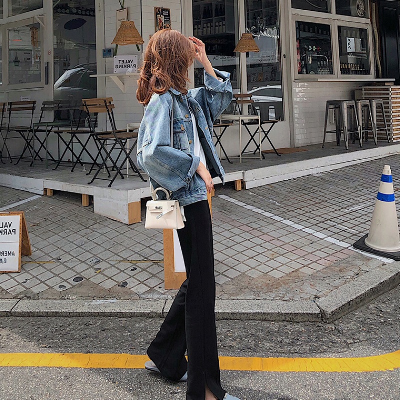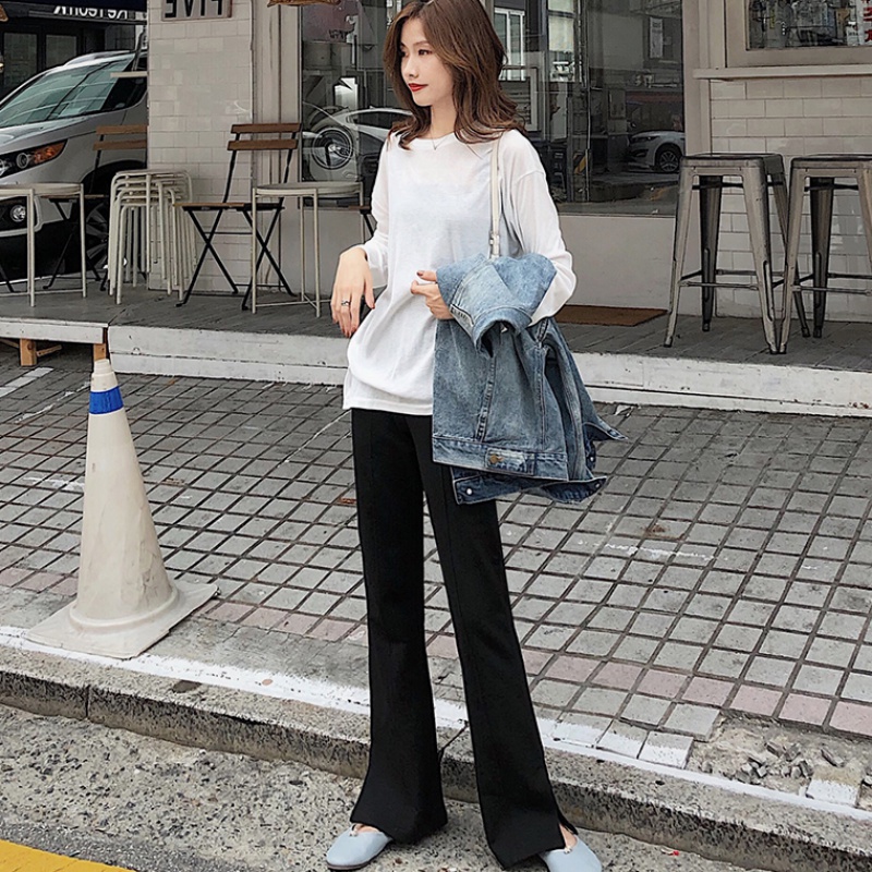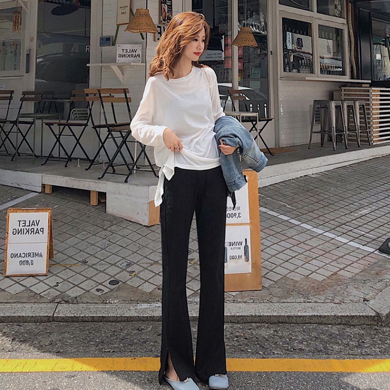 Black micro flared pants women's spring and autumn side open fork high waist hanging fashion thin chic slim straight casual small flared pants