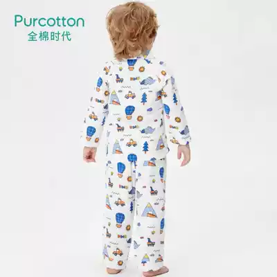 Full cotton era boy long sleeve home set cotton four-layer gauze soft breathable air-conditioning clothing dinosaur pajamas