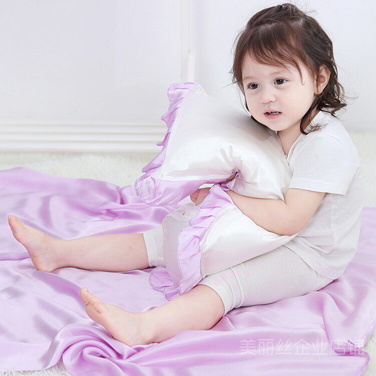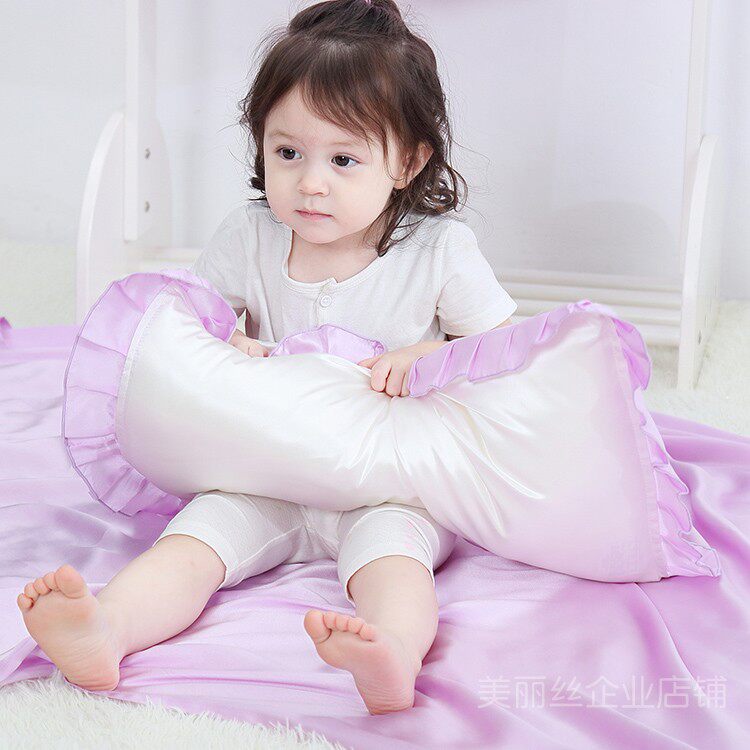 Child Real Silk Pillowcase Baby Bifacial 100 Mulberry Silk Pink Cartoon Silk Kid Infant Garden Pillow Headgear