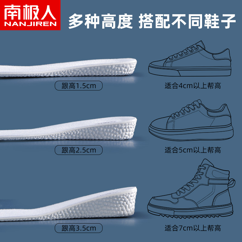 Antarctic invisible inner heightening insole men's sports shock absorption breathable sweat-absorbing deodorant boost heightening pad summer