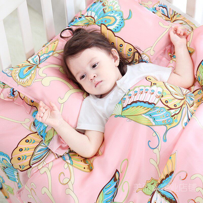 Children true silk Three sets of baby children Kindergarten Three sets of mulberry silk t quilt cover bed linen pillowcase mattress