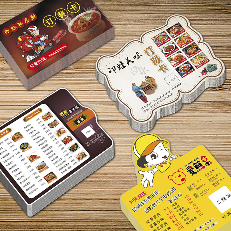 Thickened delivery of meals five-star good evaluation card peace of mind card custom fast food advertising business card printing catering industry order menu to make private kitchen voucher coupons customized free design