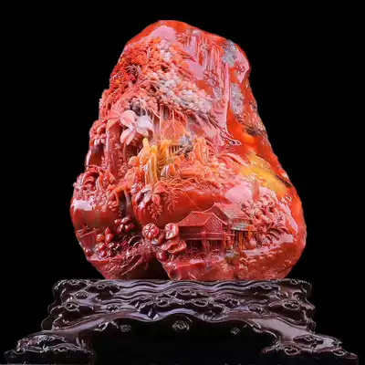 Fujian Shoushan stone ornaments Natural Hibiscus stone carving jade rough handmade seal material chicken blood stone lucky town house