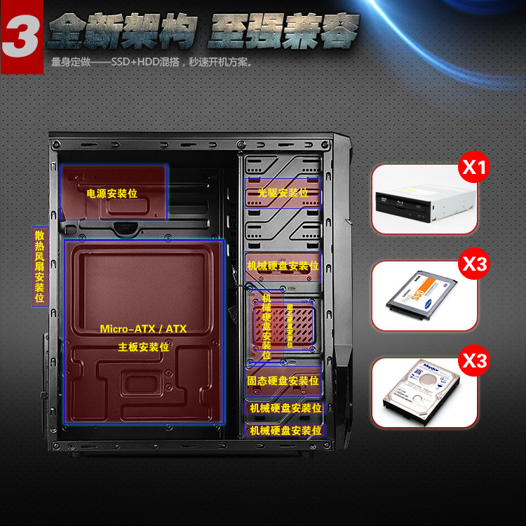 Desktop computer case iron man panel net class home office game USB3 0 extremely thick plate