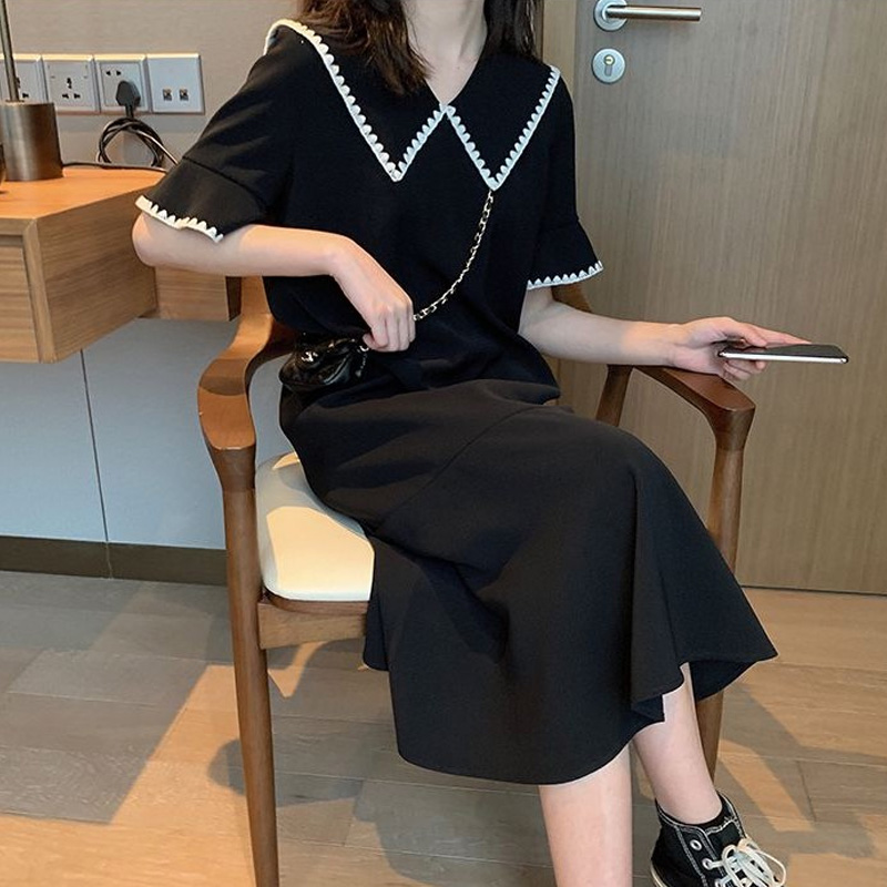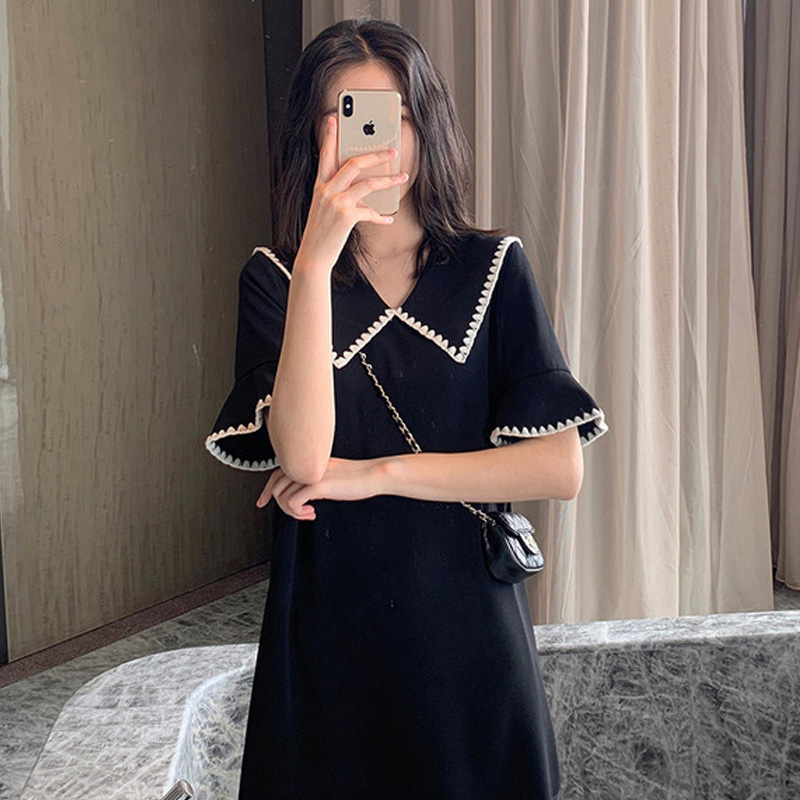 [Black dress to cover the belly, thin fried street dress, thin waist girl]