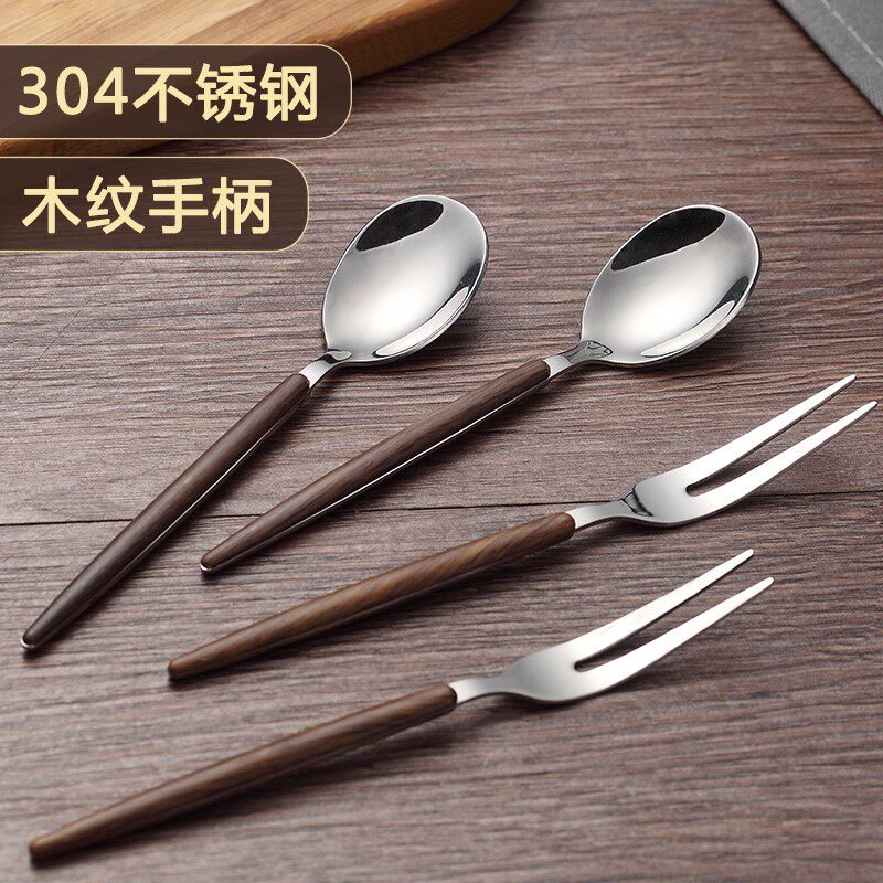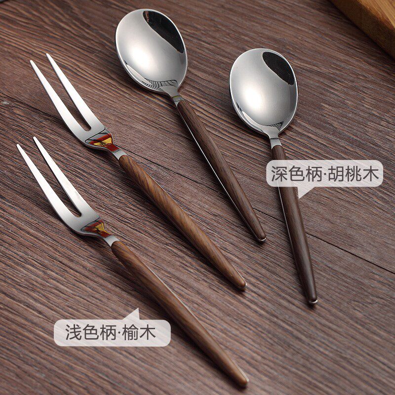Walnut color fruit fork 2 sets walnut color spoons 2 sets walnut color 1 fruit fork 1 dessert spoon Elm color fruit fork 2 sets Elm color spoons 2 sets Elm color 1 fruit fork 1 dessert spoon Hu