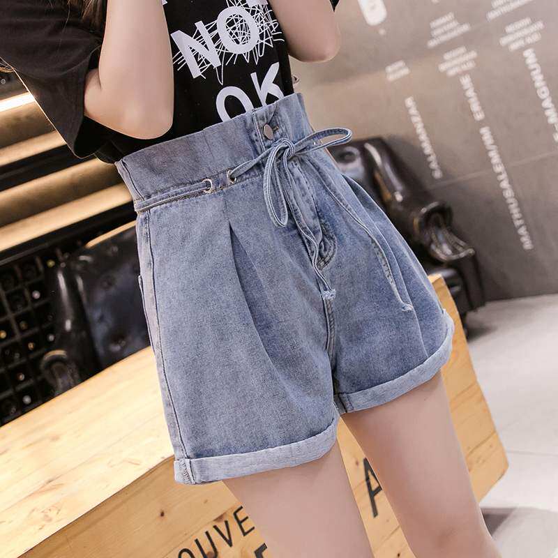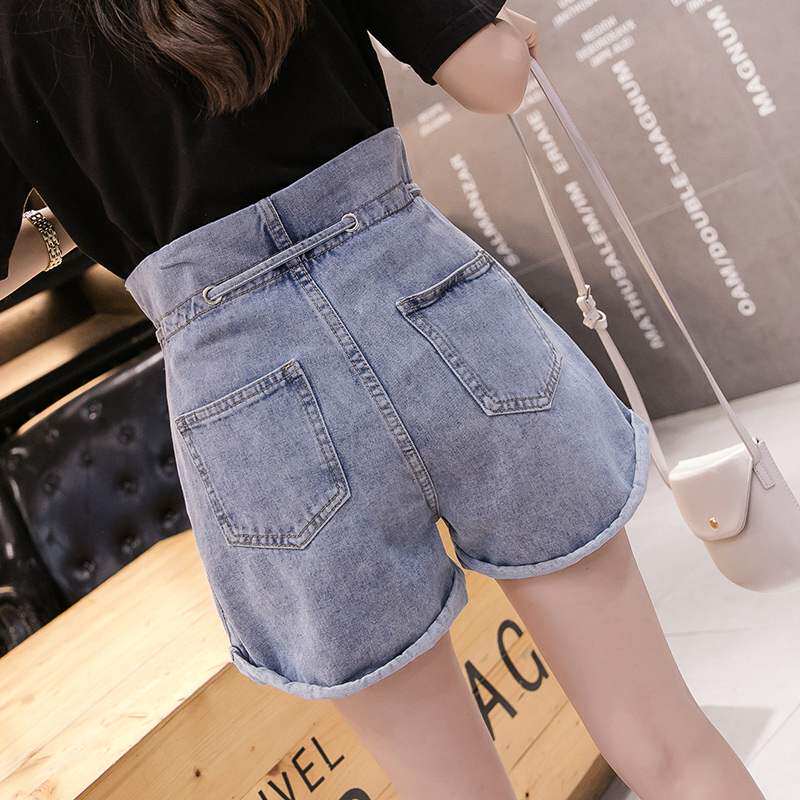 Korean denim shorts women's 2021 new high waist thin wide-leg pants women's all-match loose outerwear a-line hot pants women