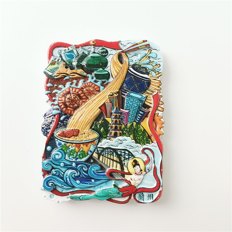 Chinese city tour of Lanzhou beef pull faced with famous attractions refrigerator sticker magnetic stereo resin