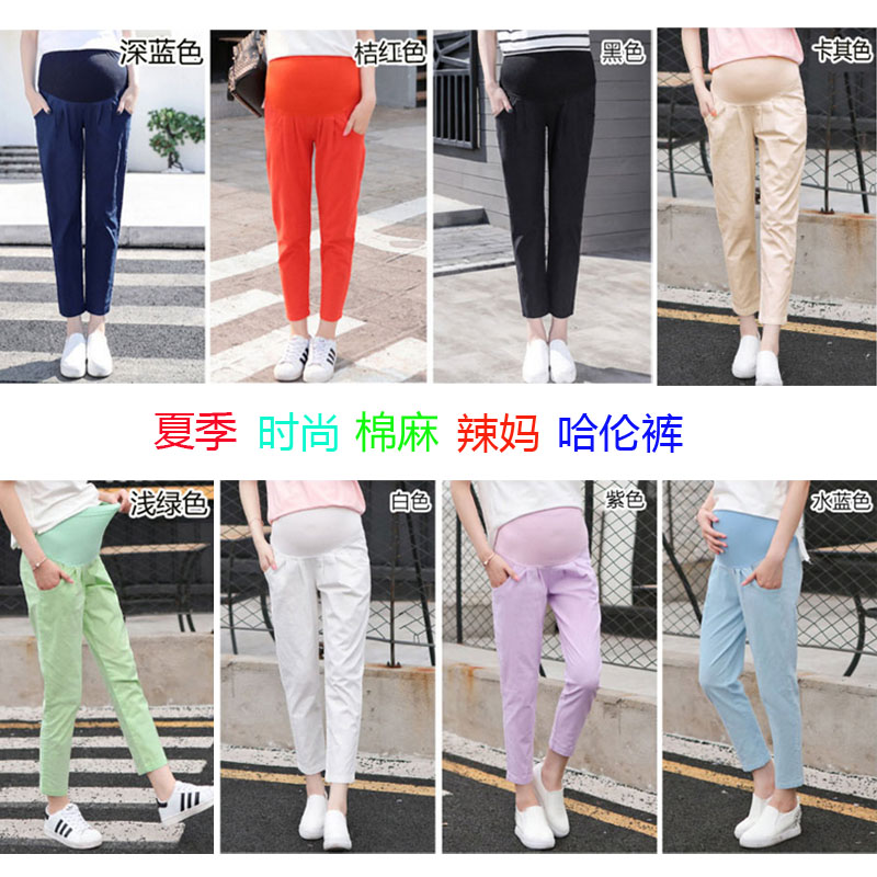 Pregnant Woman Pants Spring Summer Thin Outside Wearing 2021 New Pregnant Woman Inner Hitch Pants Summer Clothing Cotton Linen Loose 90% Nursery