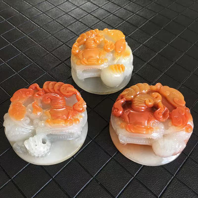 Yunnan natural yellow dragon jade brave round overlord brave ornaments pieces Longling eggplant mountain gold sand fine carving