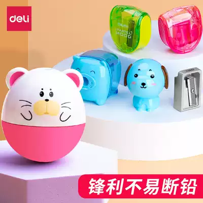 Deli children's pencil sharpener Small portable pencil sharpener Multi-function cartoon hand-cranked pen sharpener Primary school students manual pen sharpener Kindergarten small mini cute metal pen sharpener School supplies