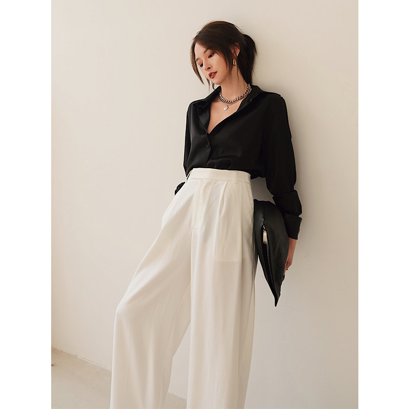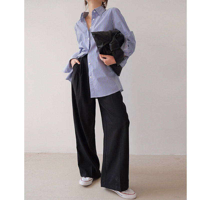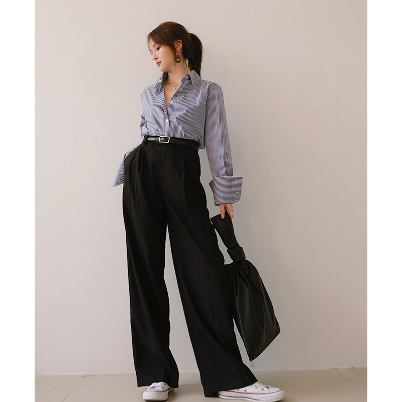 ROEY WANG anti-wrinkle all-match wide-leg pants women's loose spring and autumn Korean retro high waist drape straight suit pants