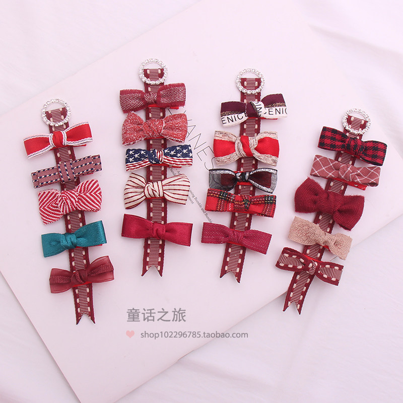 Children's headwear baby hairpin classic simple street beat one word bow all-inclusive storage hanging buckle small set