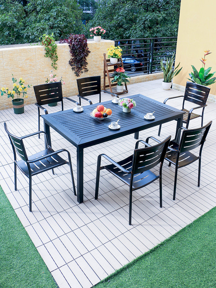Outdoor Table And Chairs Cast Aluminum Plastic Wood Embalming Combined Villa Courtyard Terrace Terrace Balcony Garden Simple Leisure Iron Art Table And Chairs