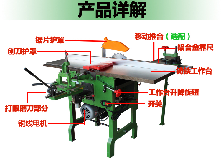 New push desktop multi-function woodworking multi-purpose machine bed electric planer flat planer press planer square hole drilling table planer push table saw 10 in 1