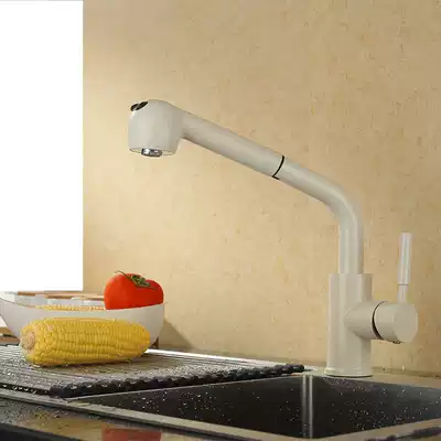 German universal rotatable telescopic 304 stainless steel pull-out kitchen faucet oatmeal color hot and cold wash basin