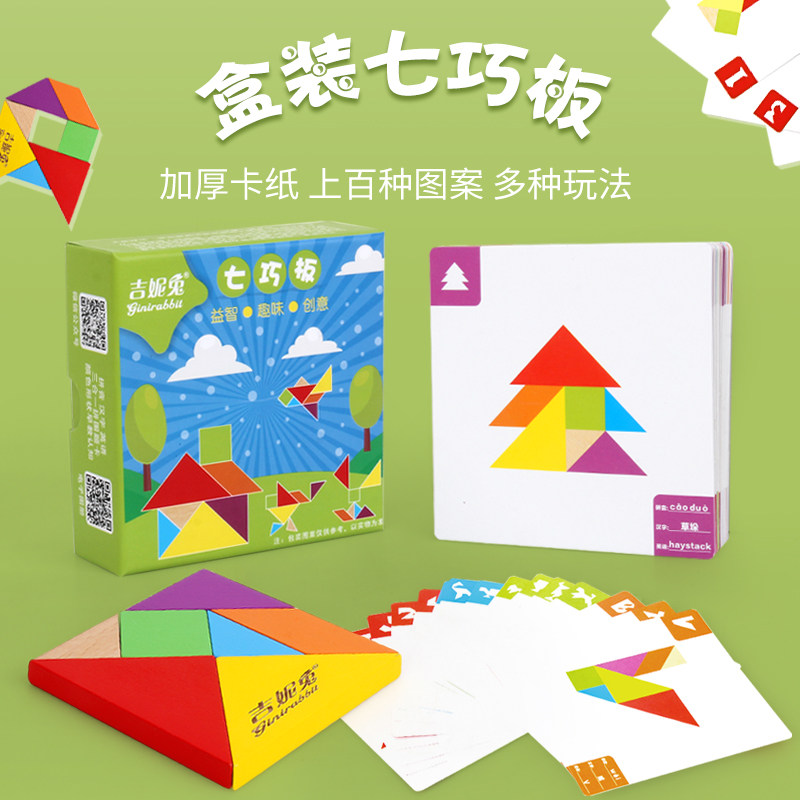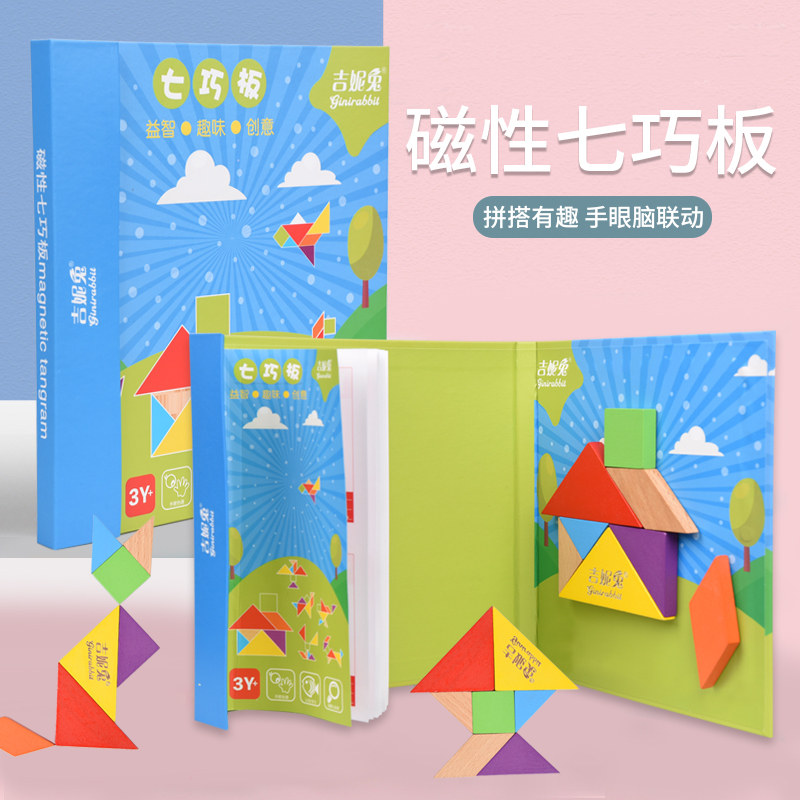 Magnetic tangram 180 questions Magnetic tangram 220 questions Maple tangram thickened tangram textbook color wood 15CM thickened tangram Textbook color wood 18CM Magnetic tangram